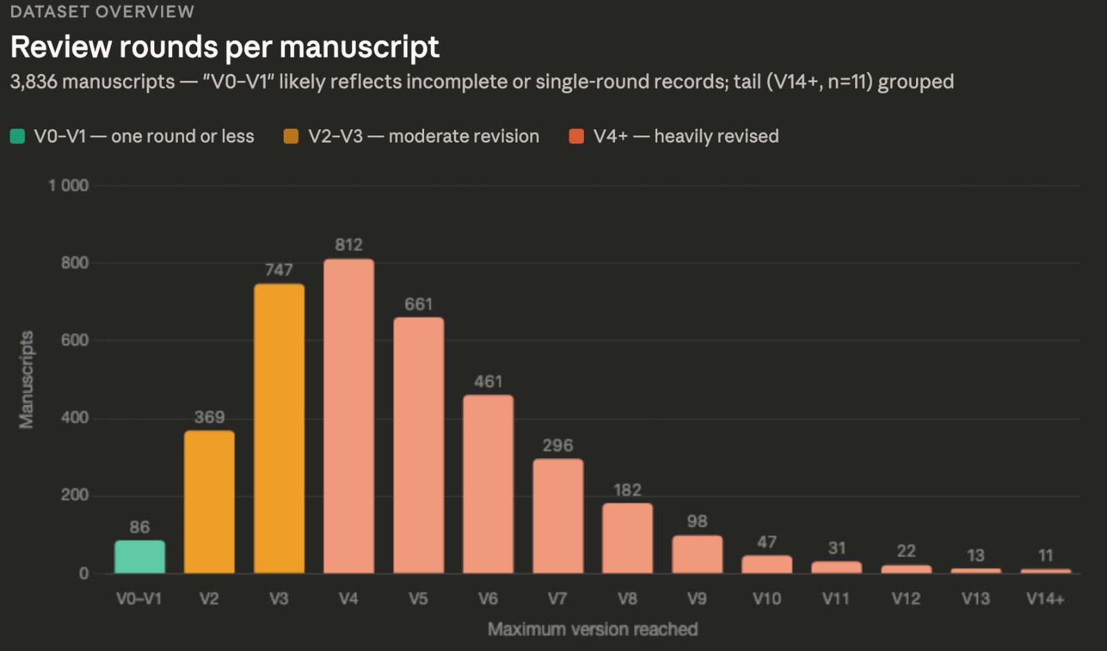 However, let’s not overlook the considerable number of manuscripts that went through up to 5-6 rounds of review, that could mean more than a year+ of exchanging and waiting…
